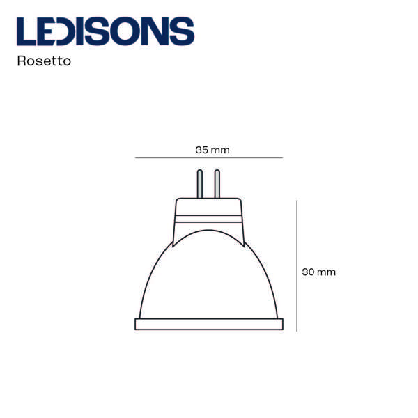 La douille GU4 doit son nom à la distance entre les deux broches, qui est de 4 mm. Comme cette ampoule se clipse et se déclipse facilement de son support, le spot est facile à remplacer en cas de défaut. L’ampoule LED a une hauteur de 38 mm et un diamètre de 35 mm. La ampoule GU4/MR11 Rosetto est une ampoule 12 V. Si vous souhaitez utiliser la lampe LED sur 230 V, il faut toujours utiliser un driver/transformateur LED.