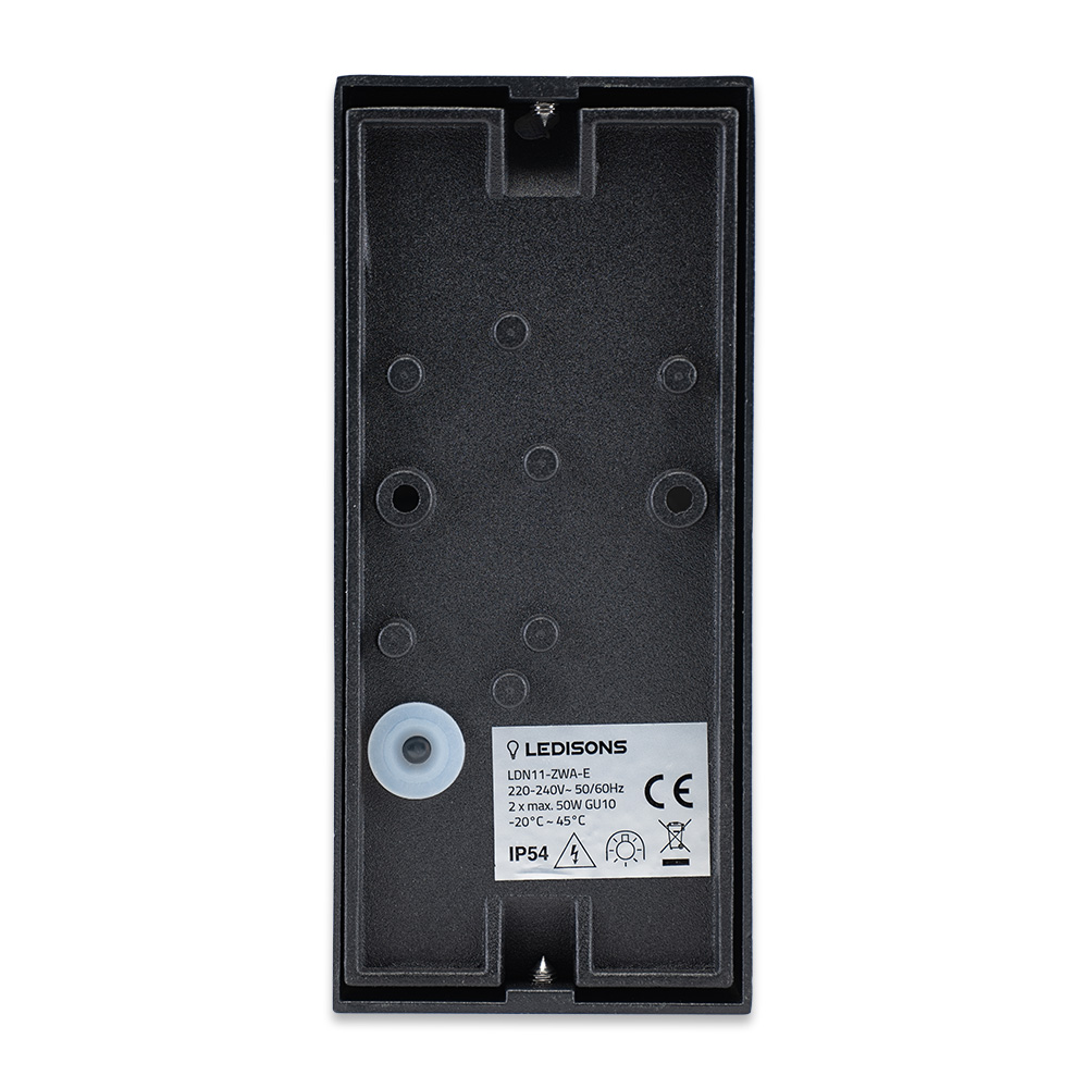 Ce cadre de montage noir peut être utilisé si vous recherchez une applique murale étanche avec une double douille. Dans le cadre se trouvent deux douilles GU10 dans lesquelles il est possible d’insérer des . Cette applique murale LED a une valeur IP de IP54, et elle peut donc être installée dans des locaux humides. Il est toutefois important que les câbles d’alimentation électrique et l’armature soient également étanches. L’applique LED Lido est également disponible en . L’applique murale LED ‘Lido double’ emploie la technique up&down. Cela signifie que la lumière de la lampe est diffusée à la fois vers le haut et vers le bas. L’applique murale étanche Lido est également disponible avec une où la lumière n’est diffusée que dans une seule direction.