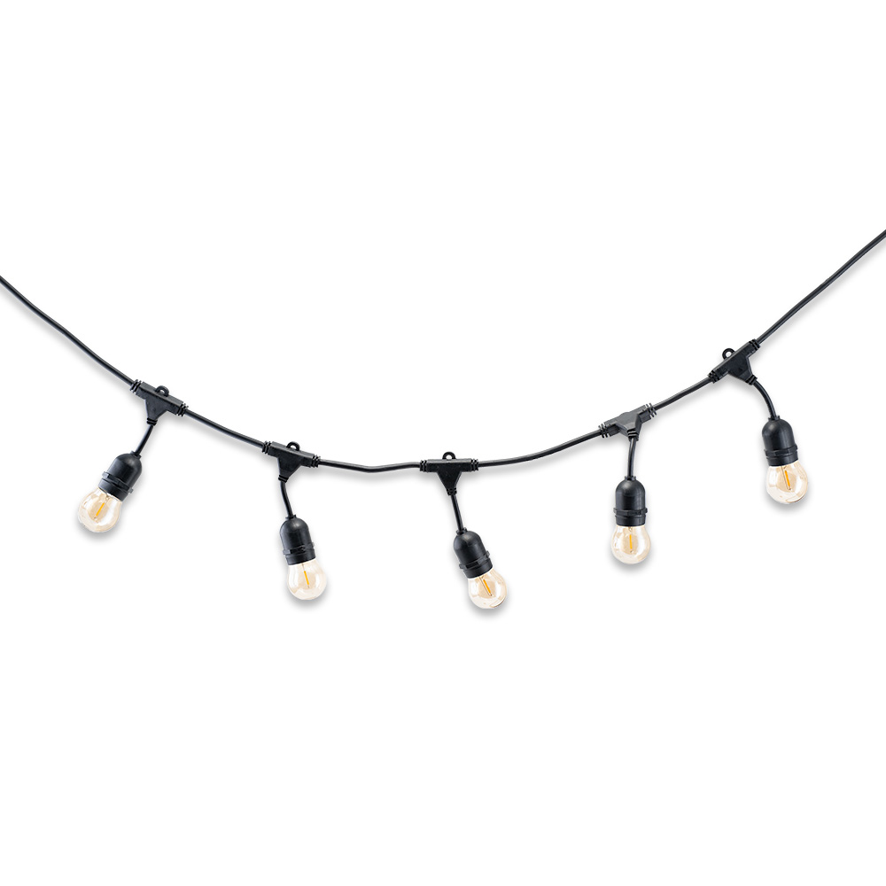 à LED a 15 lampes, toutes espacées de 1 mètre. Les ampoules LED qui sont fournies peuvent être simplement encliquetés dans l’armature. La guirlande à LED est livrée avec une fiche d’alimentation, et elle est donc très facile à brancher. Il est également possible de relier plusieurs guirlandes les unes aux autres pour créer une longue guirlande, branchée sur une seule et même fiche. Les lampes fournies ont une couleur de lumière très chaude, à savoir 2200K. Il en résulte une atmosphère très conviviale, de sorte que la guirlande aura toute sa place dans le jardin ou lors d’une fête!