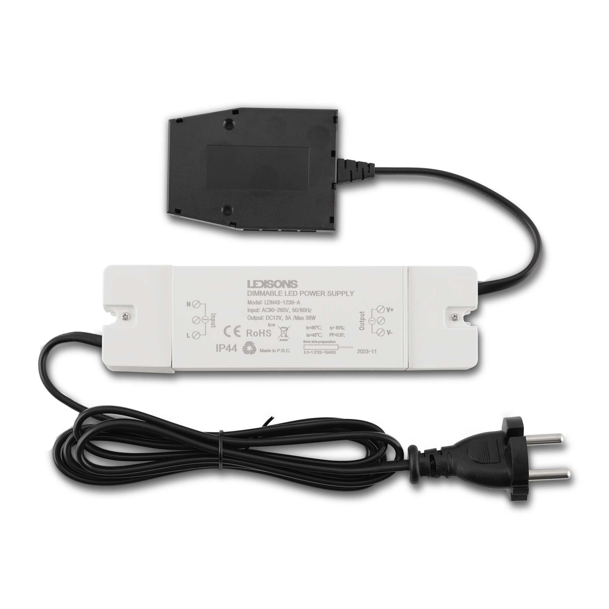 Cet ensemble plug-and-play est fourni avec 1 driver et un boîtier de connexion sur lequel vous pouvez brancher plusieurs spots. Chaque spot dispose d’un câble de 5 mètres avec une fiche qui peut être insérée directement dans le boîtier de connexion du driver. Ces fils peuvent être simplement clipsés dans le boîtier de connexion. Il vous suffit alors de cacher un seul driver dans le plafond. Il peut y avoir jusqu’à 5 mètres entre les spots et le driver. Si l’espace au-dessus du plafond est trop réduit, vous pouvez placer le driver à un tout autre endroit grâce à la longueur des câbles.Le câble peut facilement être raccourci jusqu’à 10 cm.Le driver peut être connecté directement sur le 230V d’un côté. De l’autre côté se trouve le boîtier de connexion sur lequel sont reliés les spots. Les dimensions du driver sont de 107 x 43 x 23 mm (longueur x largeur x hauteur) et les dimensions du boîtier de raccordement sont de 51 x 31 x 17 mm.Le câble reliant le projecteur encastré à LED au driver est situé sur le côté du spot de sorte que vous n’avez pas besoin de prévoir de profondeur supplémentaire pour loger le câble.