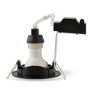 Voici les dimensions de ce spot : Découpe 75 mm, bord extérieur 88 mm et hauteur 78 mm. Vous avez très peu d’espace au-dessus de votre plafond ? Nous vous recommandons dans ce cas le projecteur LED encastrable. Il ne renferme pas de spot GU10 séparé. Il a donc un faible encombrement, 23 mm de hauteur seulement !L’avantage de ces projecteurs par rapport aux spots encastrés à LED, c’est que vous pouvez remplacer l’ampoule. Vous pouvez retirer le spot GU10 de son logement sur la face avant du luminaire.Les projecteurs LED encastrables durent d’ailleurs plus longtemps que ces spots GU10 car ils sont associés à un transformateur séparé, ce qui est meilleur pour leur durée de vie.Le spot GU10 est plus facile à remplacer, mais dure un peu moins longtemps que les projecteurs encastrés complets.Vous recherchez un spot autonome sans LED GU10 et sans armature ? Optez dans ce cas pour le spot autonome LED Monti en noir.