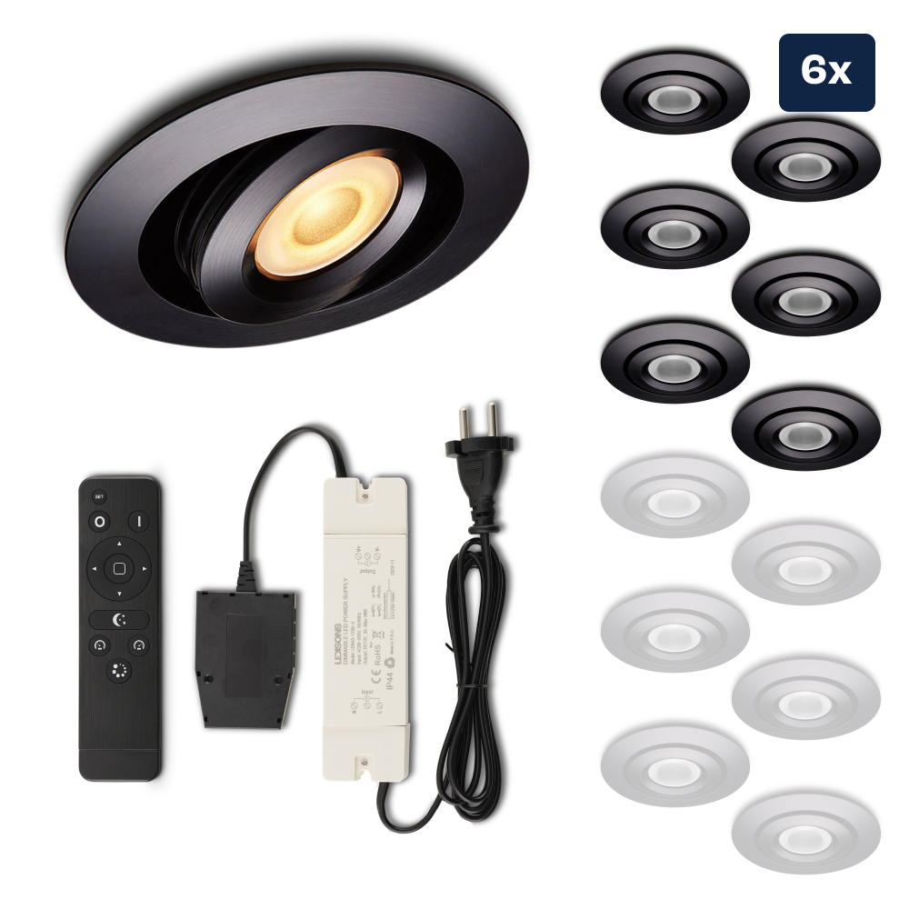 Set de spots LED encastrables avec télécommande Piccolo noir 3 W dimmable IP44 1-12 pièces