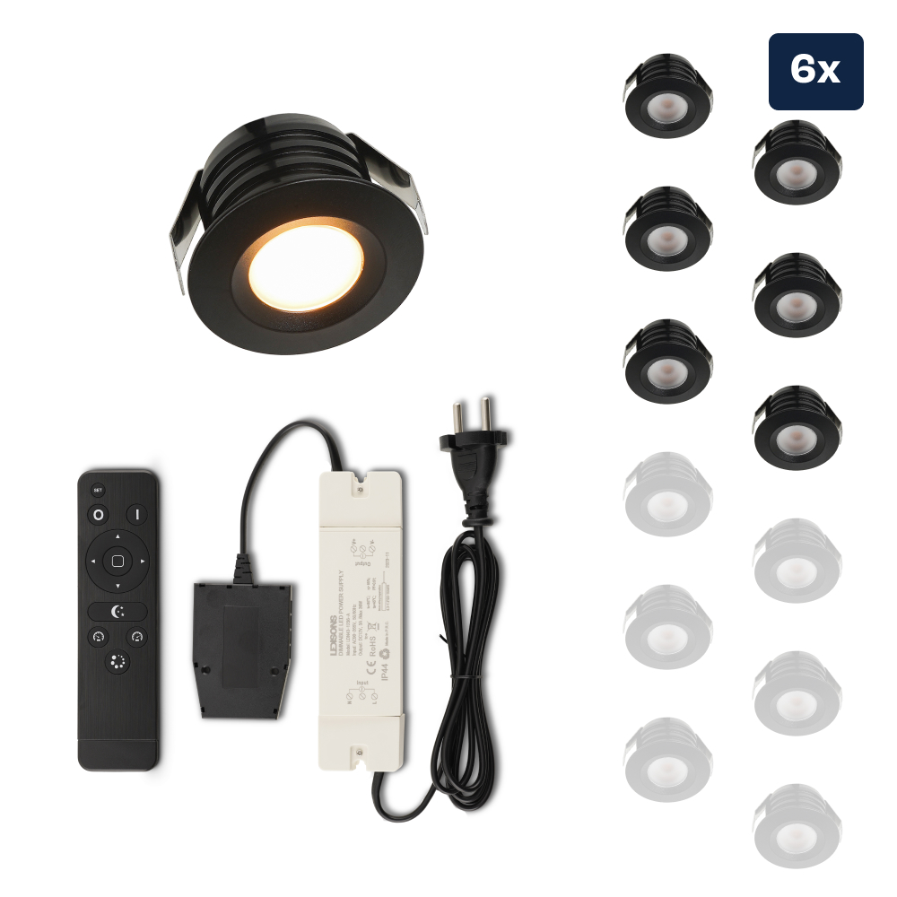 Set de spots LED encastrables avec télécommande Valdeno noir 3 W dimmable IP44 1-12 pièces